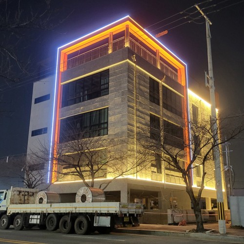포항 카카오 스크린 골프장 외벽 라인 경관조명, 라인투광기 및 구공탄 설치 사진