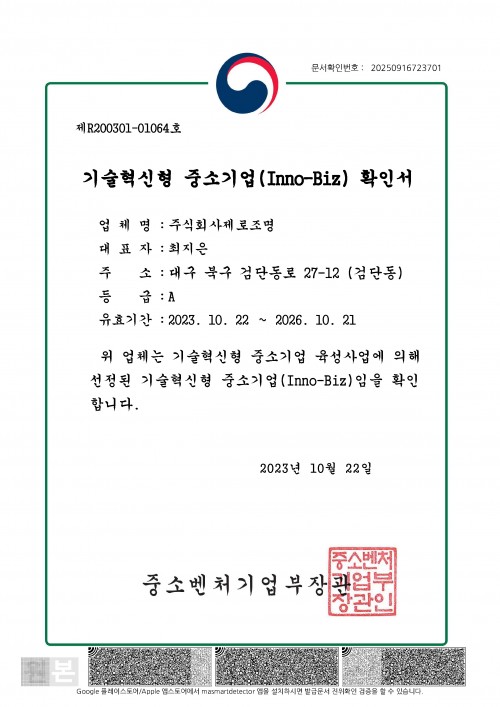기술혁신형 중소기업(Inno-Biz)확인서
